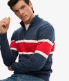 An effortless way to uplift your wardrobe with a minimalist Superdry touch. Our Cotton Stripe Half Zip Knit is perfect for the everyday, with its premium ribbed features and slim fit design, you'll stay warm and cosy while maintaining that ideal look. Thoughtfully detailed with small embroidery, quality is loomed throughout this piece.
