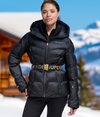• Removable snow skirt and a flattering adjustable belt around the waist